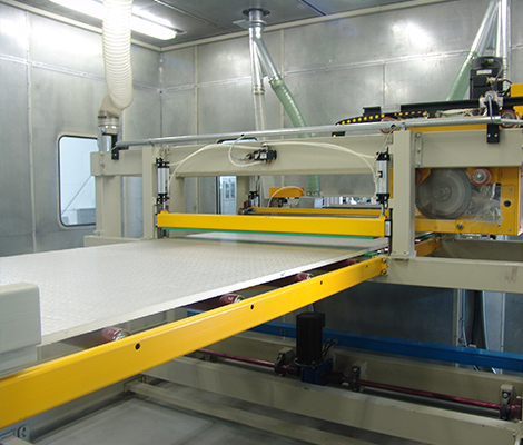 擁有國內(nèi)從歐洲全套引進的柔性面材夾芯板連續(xù)生產(chǎn)線兩條。